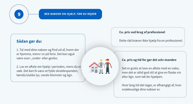 - Bed naboer om hjælp, før du rejser