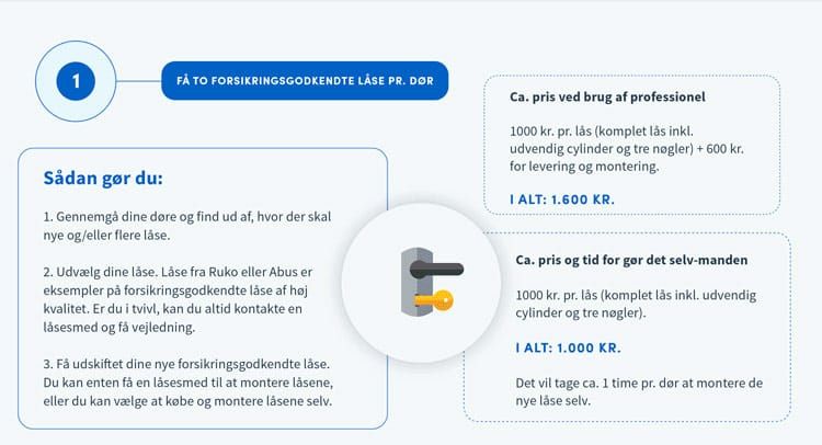 - Få to forsikringsgodkendte låse pr. dør