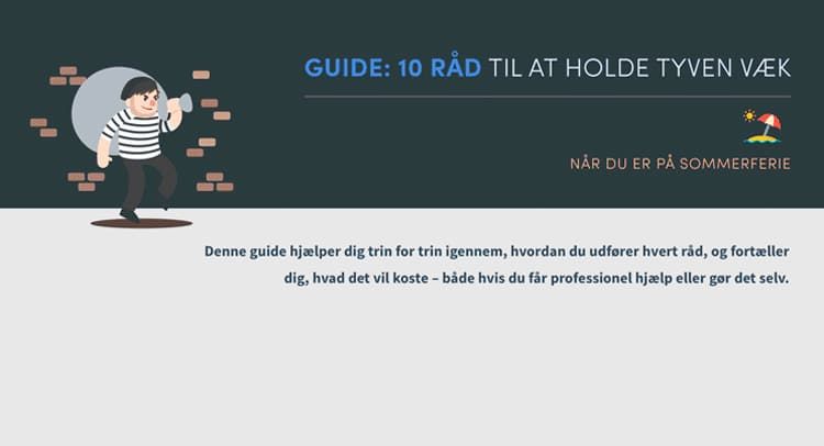 Du kan aldrig gardere dig 100 % mod indbrud. Men en ting er sikkert: Følger du disse 10 råd, inden du tager på sommerferie, vil du give tyven enormt dårlige arbejdsbetingelser. Og det vil højst sandsynligt holde tyven på lang afstand af dit hjem.