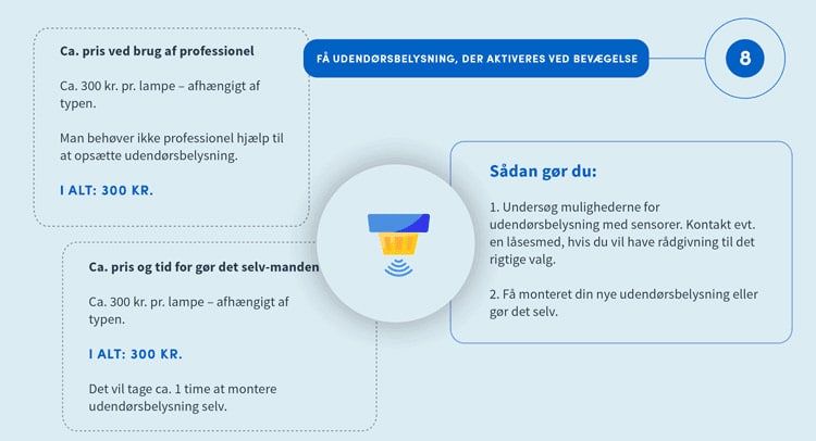 - Få udendørsbelysning, der aktiveres ved bevægelse