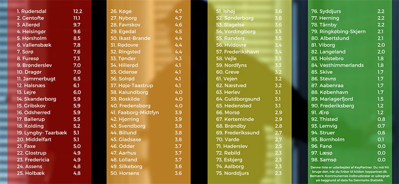 Hos KEYPARTNER har vi undersøgt, hvad indbrudsraten er i alle Danmarks 98 kommuner.